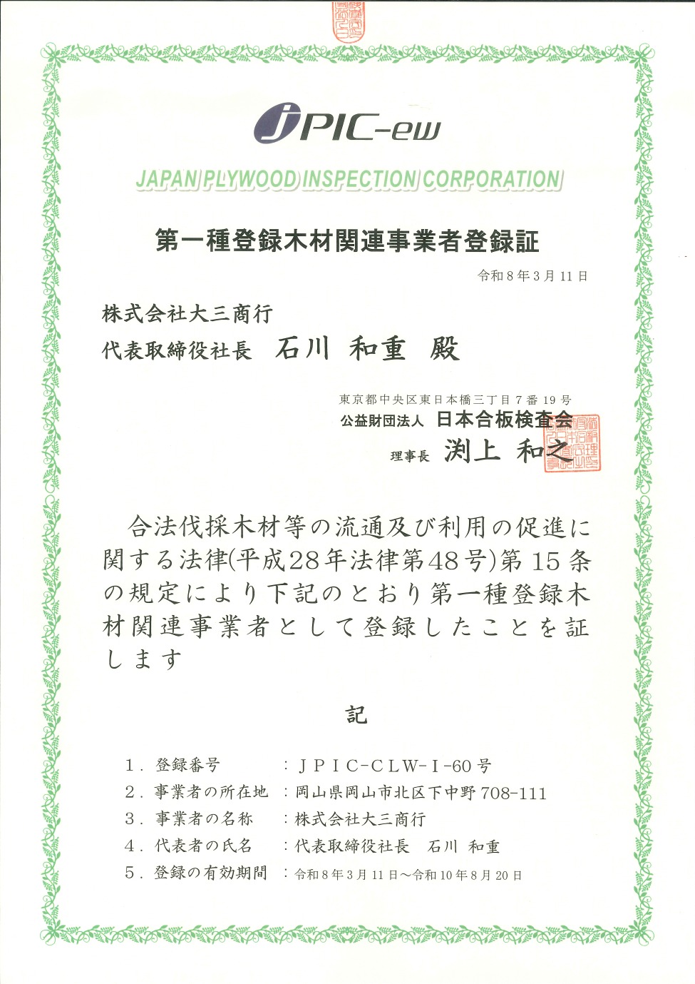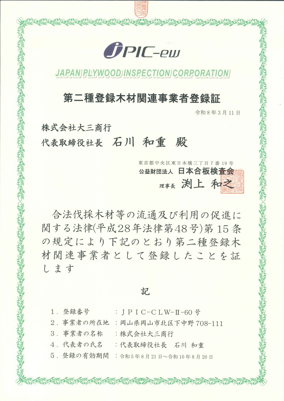 クリーンウッド法登録木材関連事業者の登録を全事業所で完了しました